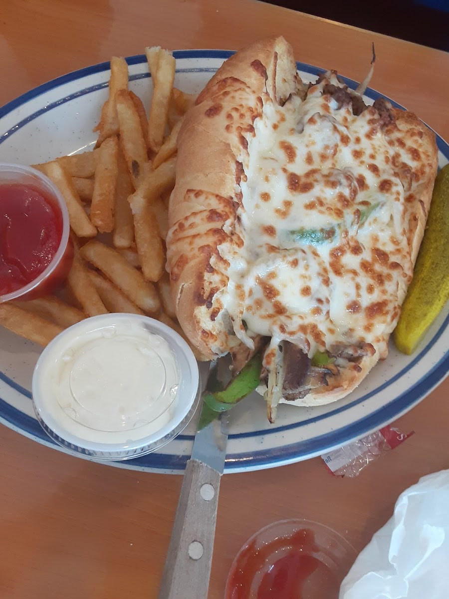 Blue sky makes homemade potatoe salad alittle on the pricy side but not on their menu, you have to ask for it, its really good, Fried Baloney approx 1/2 thick good service waitress was very attentive, Clean establishment, I had the Special perogies, and onions sour cream fresh potato salad not on menu homemade you have to request it. I recommend this place of Business. Wish they were still open 24hrs