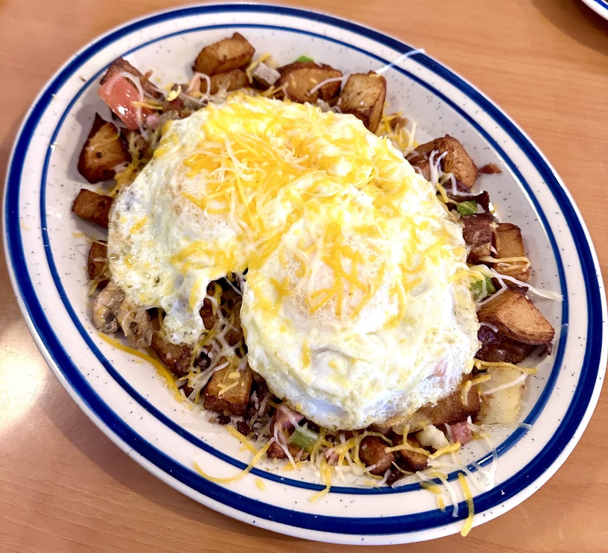 The pumpkin pancakes are INCREDIBLE ! The rest of the food was delivered in very large servings. We have no complaints. Eddie was a great server. If we come again I hope we have her again.